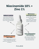 کاهش جوشها و لکهای پوستی: این سرم با ترکیب نیاسینامید و زینک، به کاهش التهاب و جلوگیری از ایجاد جوشهای جدید کمک میکند.